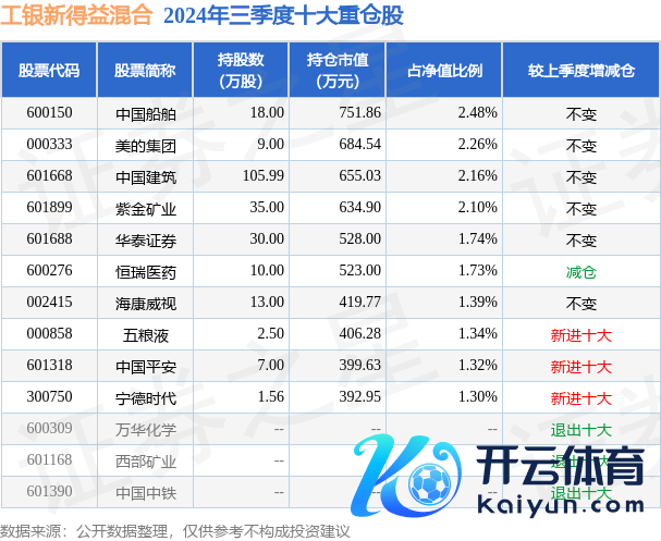 工银新收成搀杂为搀杂型-偏债基金,字据最新一期基金季报露馅,该基金金钱建设:股票占净值比29.01%,债券占净值比69.58%,现款占净值比1.95%。基金十大重仓股如下: