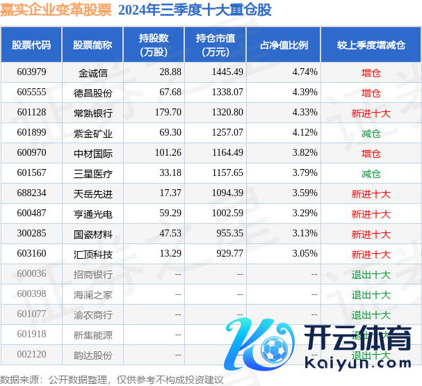 嘉实企业变革股票为股票型基金,证实最新一期基金季报显现,该基金金钱设置:股票占净值比90.08%,债券占净值比4.52%,现款占净值比1.79%。基金十大重仓股如下: