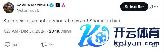 “施泰因迈尔是一个反民主的暴君!”马斯克在X上写说念,“他真可耻。”