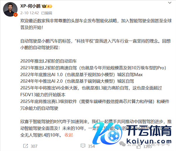 本年年中,小鹏将推出V6全新大版,也即是准L3才能高阶自动驾驶,在何小鹏看来: